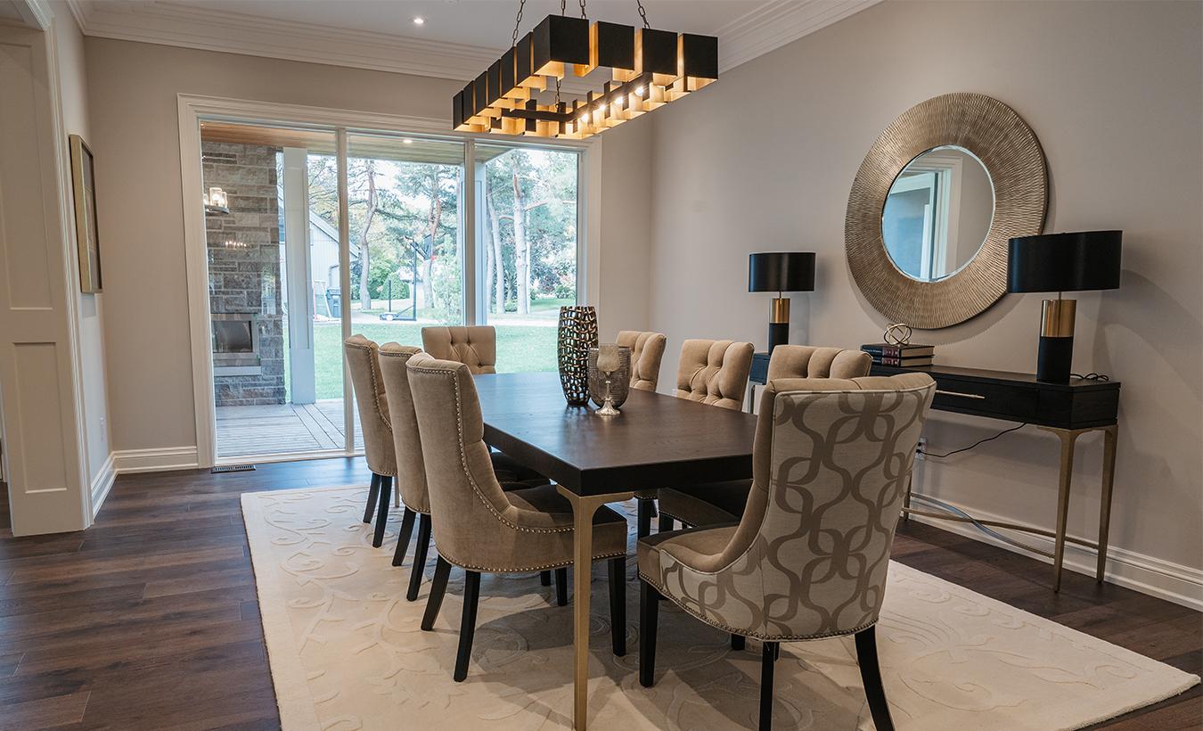 A new modern/transitional custom home in Mississauga, this house is in a prestigious area close to Lake Ontario. The low-pitched roof, along with the large, glazed areas and its massing give this home a more modern approach. The main materials are stone and wood siding, which makes this house integrate well with its landscaping.